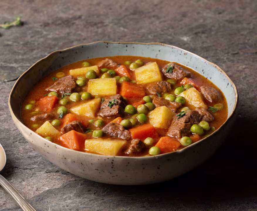 Kuzu eti ve bezelyeli sebze yemeği